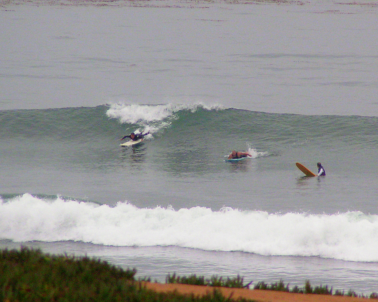 Despite the high tide there were a few bouncy waves to ride. Bouncy from the water rebounding off the cliff at the reef. The kind of waves that jack up with the reverse swell then the wave takes you on a little elevator ride up and down until finally it breaks. Like a rodeo, really.
